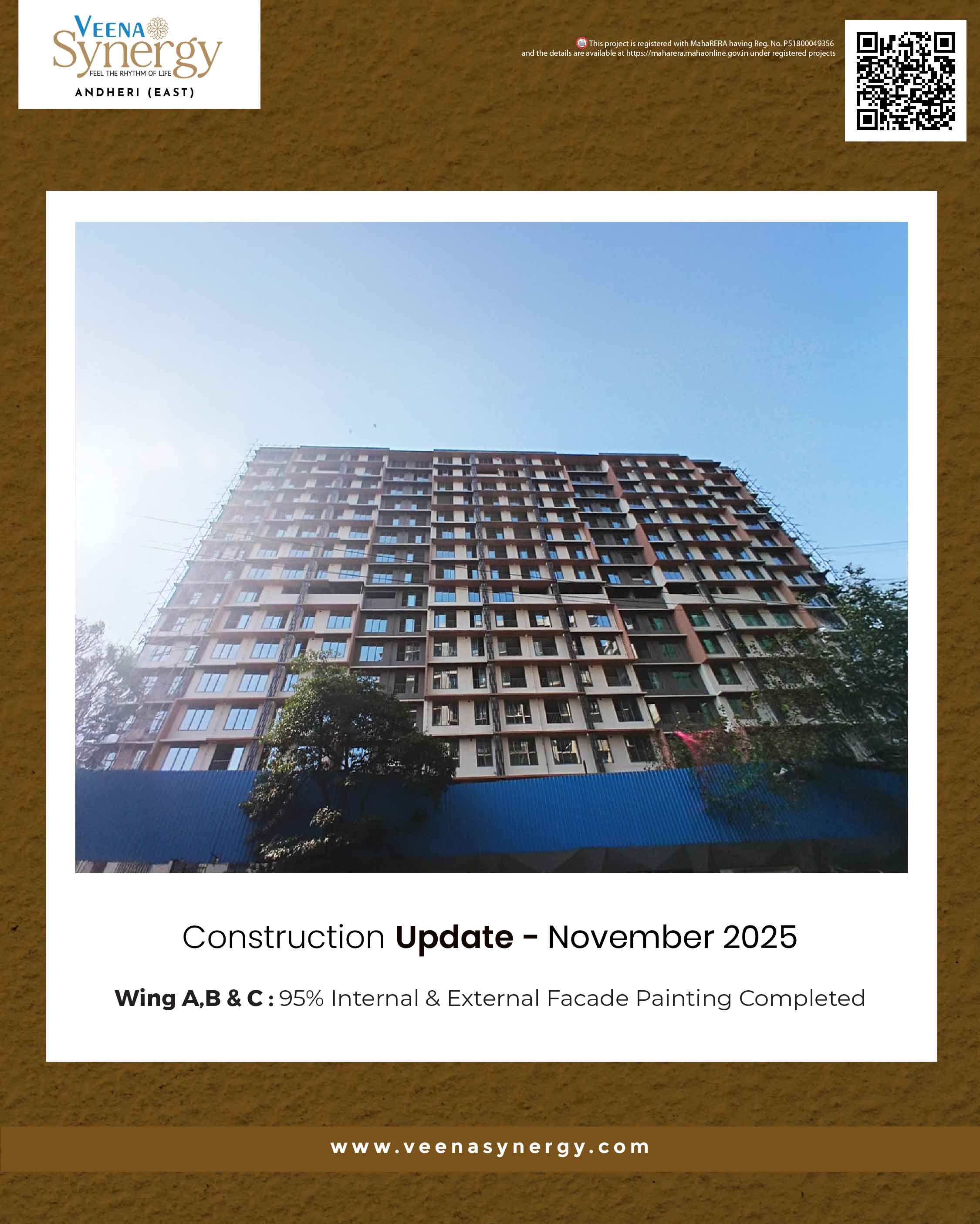Disclaimer: Veena Synergy has been registered under Maha RERA as P51800049356 and is also available at the website https://maharera.mahaonline.gov.in. This website does not constitute an offer or contract of any nature whatsoever between the Promoter/Developer and the recipient. All rendered visuals, images, and maps are the artist’s conception and are for illustration purposes only unless otherwise mentioned. The developer does not warrant or assume any legal liability for the accuracy, completeness, or usefulness of any information disclosed here. All colors, furniture, and fixtures shown are for aesthetic representation purposes only and are not part of the flat offered for sale.